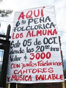 El sábado 5 de octubre año 2019 se realizó la 6ta Peña Folklórica Los Almuna, en San Fabián de Alico, región del Ñuble, Chile. Pude participar y asistir a este evento gracias a que soy integrante del Conjunto Cuncumén y nos invitaron a cantar. Murmullo del agua en mapudungún, es un conjunto folklórico que nace en 1955 en las temporadas de verano de la Universidad de Chile, a cargo de la maestra Margot Loyola. Silvia Urbina, Rolando Alarcón y Víctor Jara fueron algunos de sus integrantes en sus inicios. Con sus 65 años de trayectoria, Cuncumén se ha dedicado, en gran parte, a la proyección folkórica del canto tradicional, basándose en la recopilación directa de los cantos que pertenecen a la memoria colectiva, tanto local como nacional, constituyendo un patrimonio inmaterial.