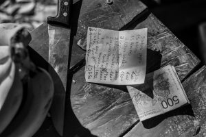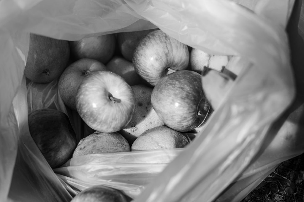 Talía pesa las bananas, las manzanas y las mandarinas. Las va separando en kilos mientras Melisa le confirma la cantidad de pedidos y repasa los números y cantidades: son veinticinco bolsones los que hay que preparar. Ani coloca las frutas ya pesadas en bolsas, cuidando que las cosas no se aplasten y todo llegue sano a sus destinos. Bocu sube los bolsones a la chata. Ya estamos por salir.