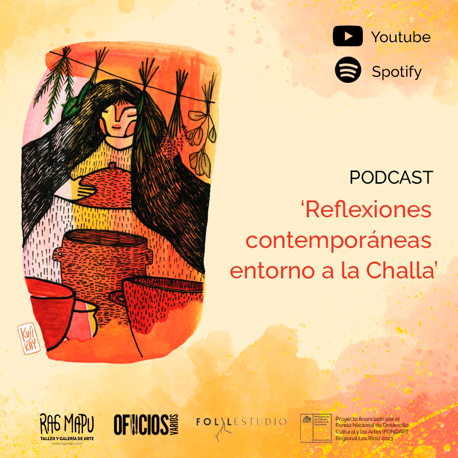 Presentación del proyecto «La Challa en la cocina Mapuche» el cual consiste en la investigación y creación de olla de barro desde el Taller Rag Mapu ubicado en Pukura. Nos adentramos en la estética de las olla mapunche , recorrer su contexto histórico para comprender desde dónde se origina el quiebre de la olla de barro mapunche y aparece la olleta de fierro en el territorio, revisamos el concepto de txawumen , que viene a responder los intercambios entre pueblos alfareros, un espacio de intercambio ancestral.